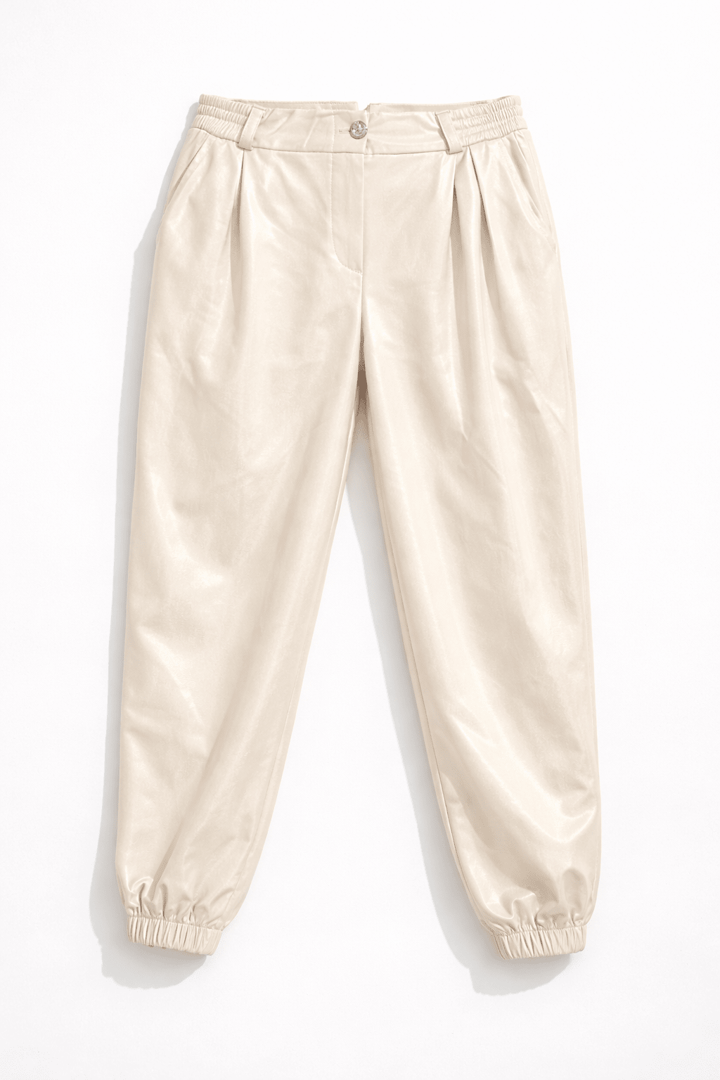 Elasticated waistband with a gold button