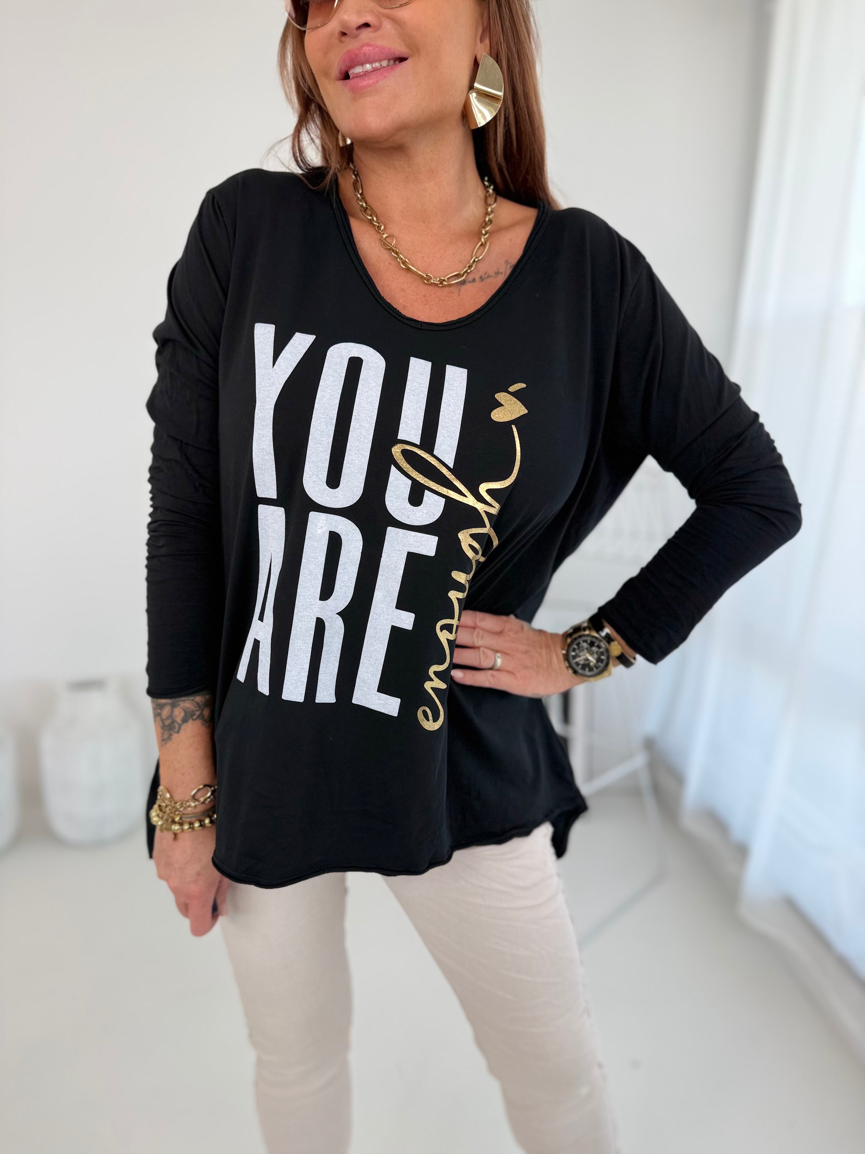 Vorne cooler Print mit goldener u. schwarzer Schrift