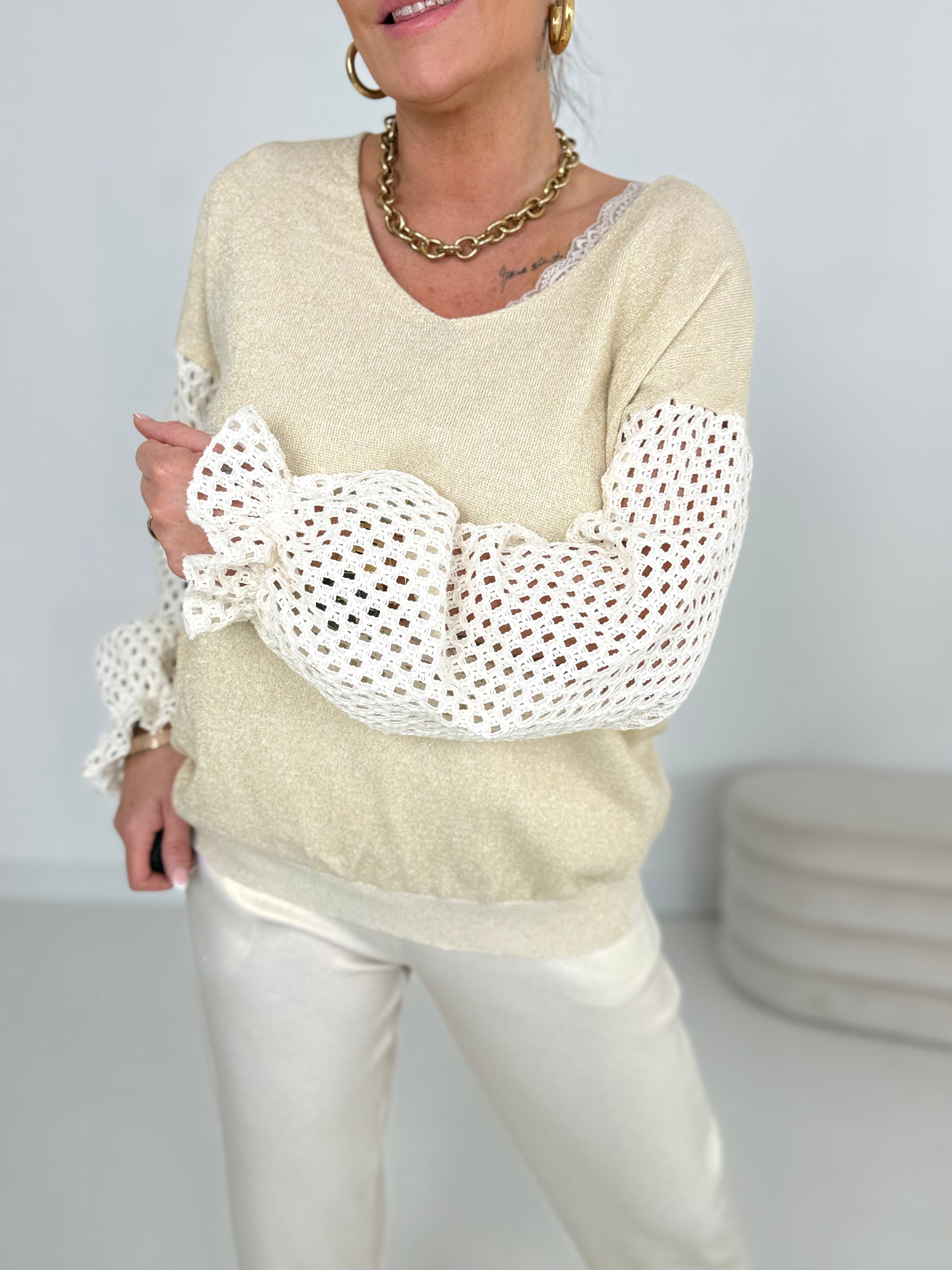 Knitted piece with golden lurex yarn and