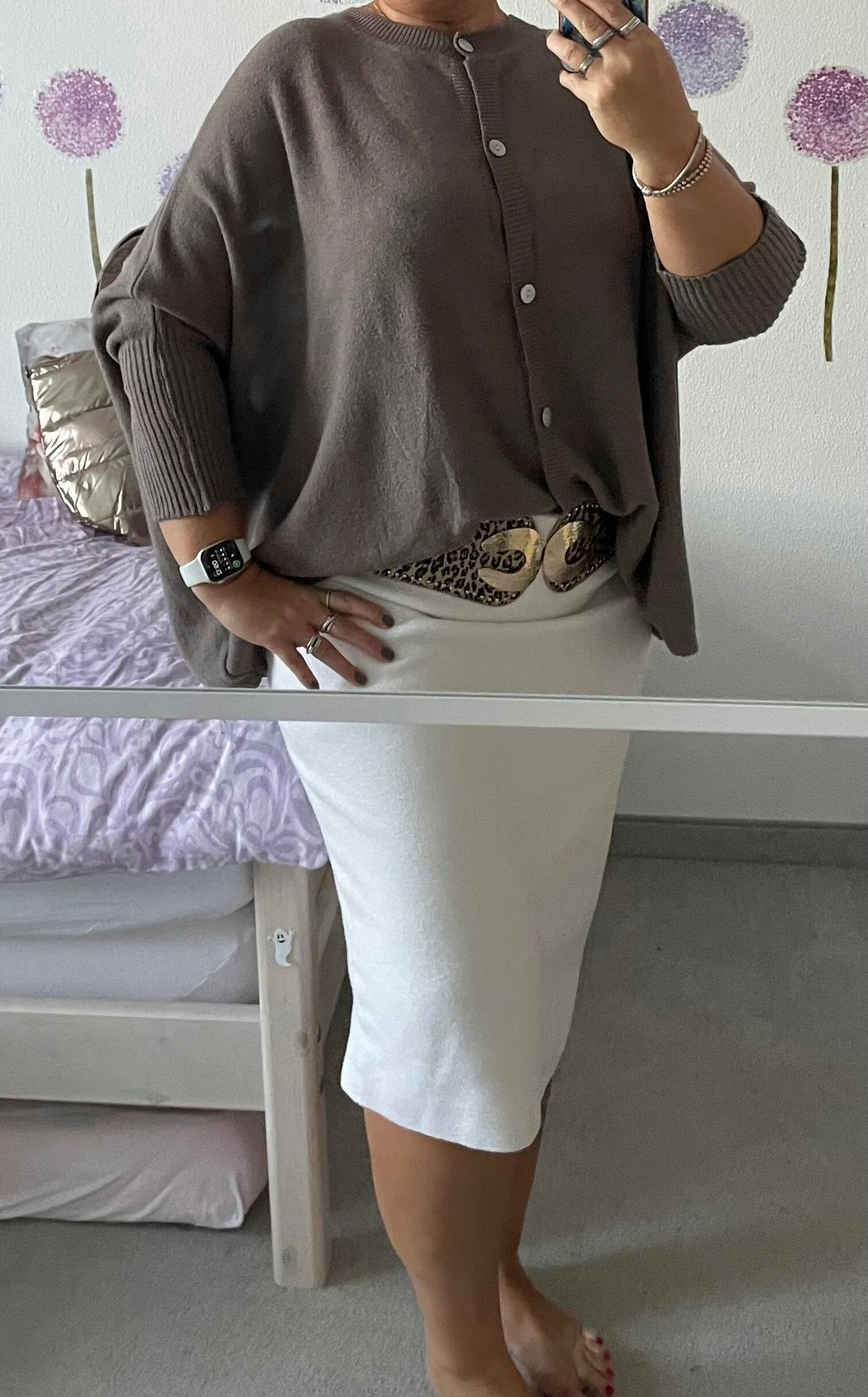 Dieser schöne Pulli mit den engen Ärmeln sieht einfach fantastisch aus auch bei einer Größe 46. Ein Must Have für diesen Winter.