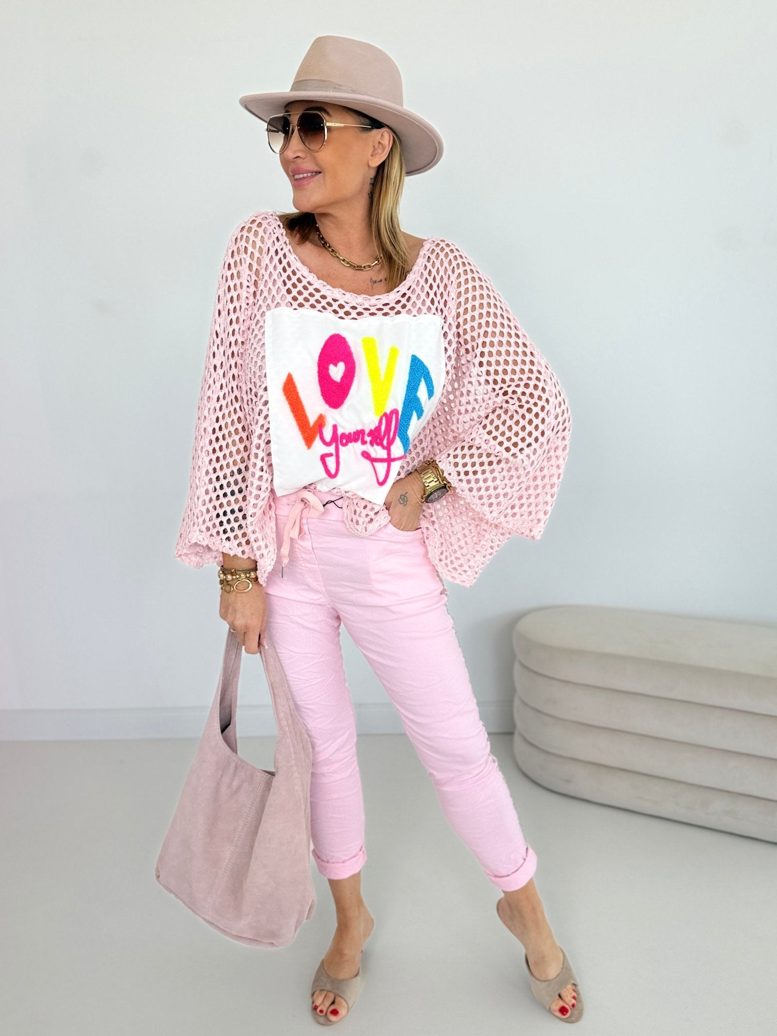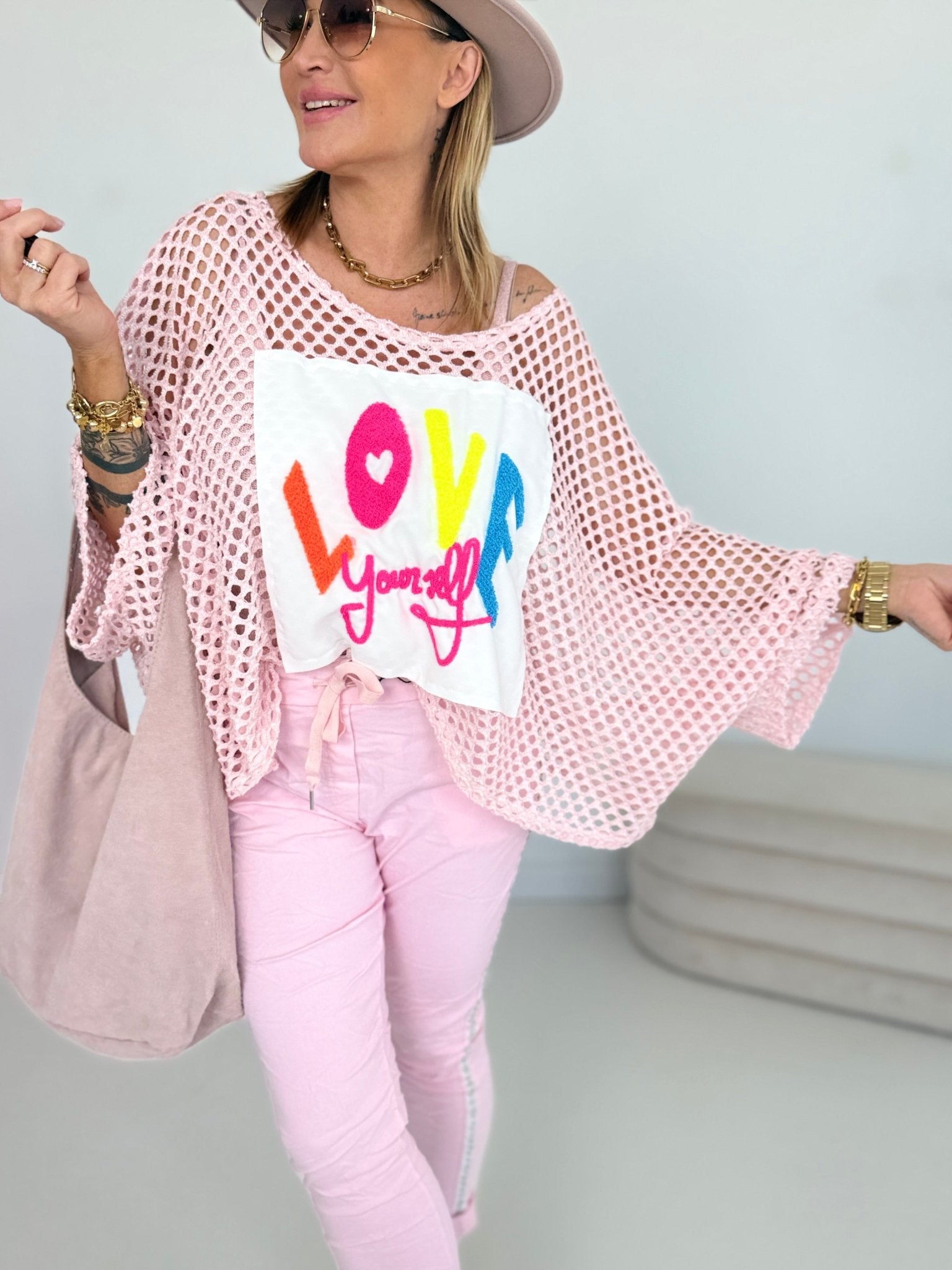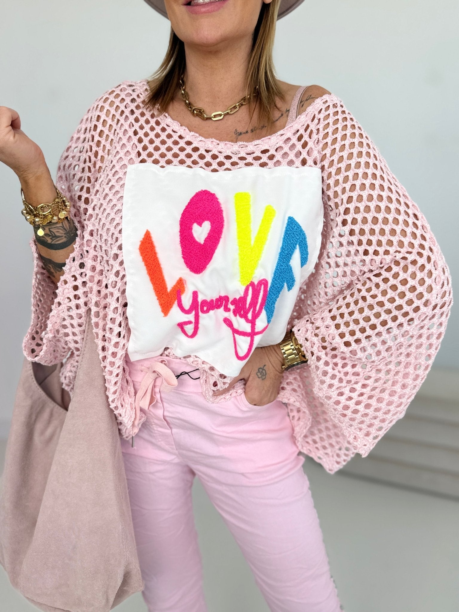 Inscription with rhinestones on the front