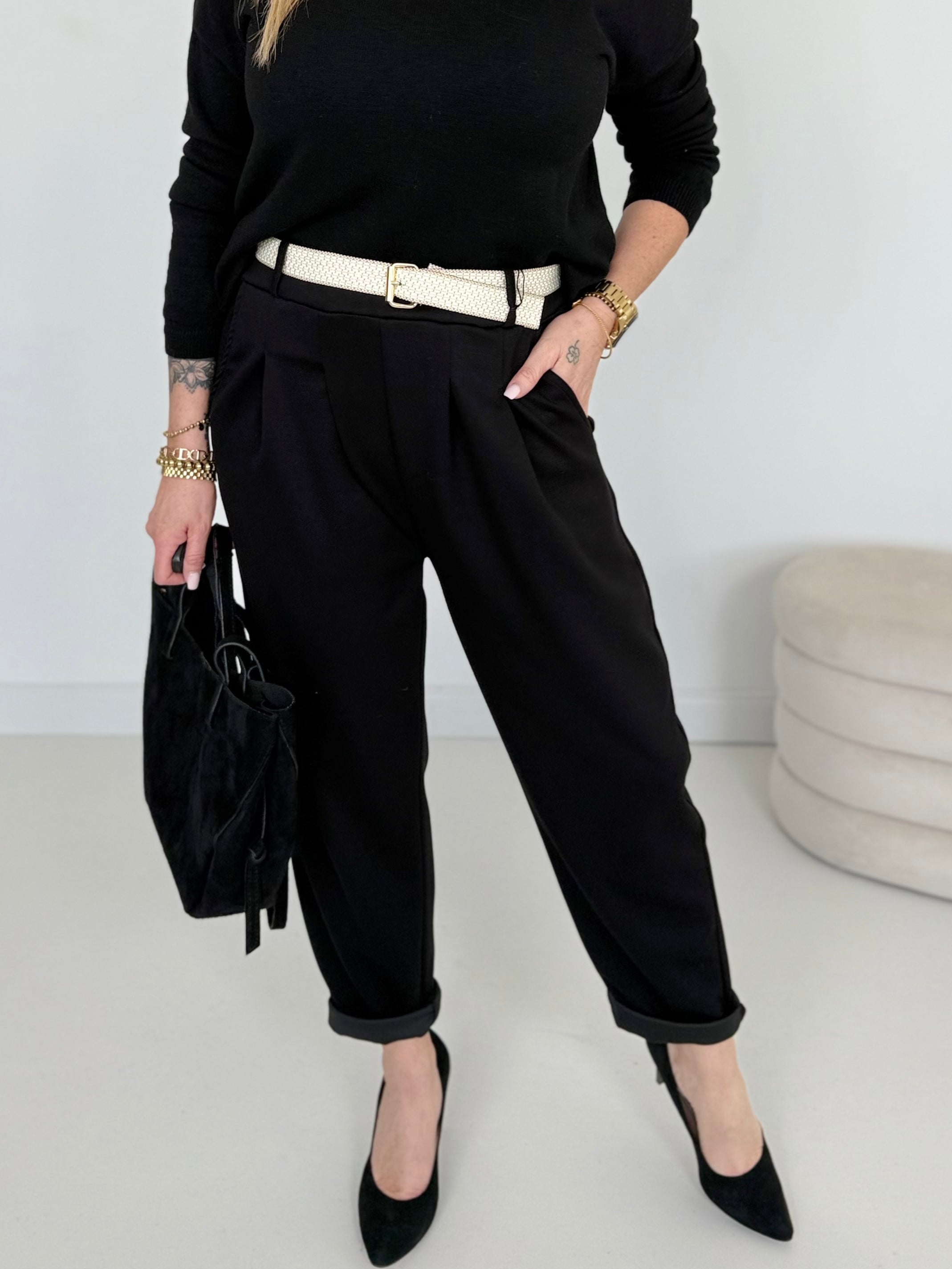 Stretch trousers including belt