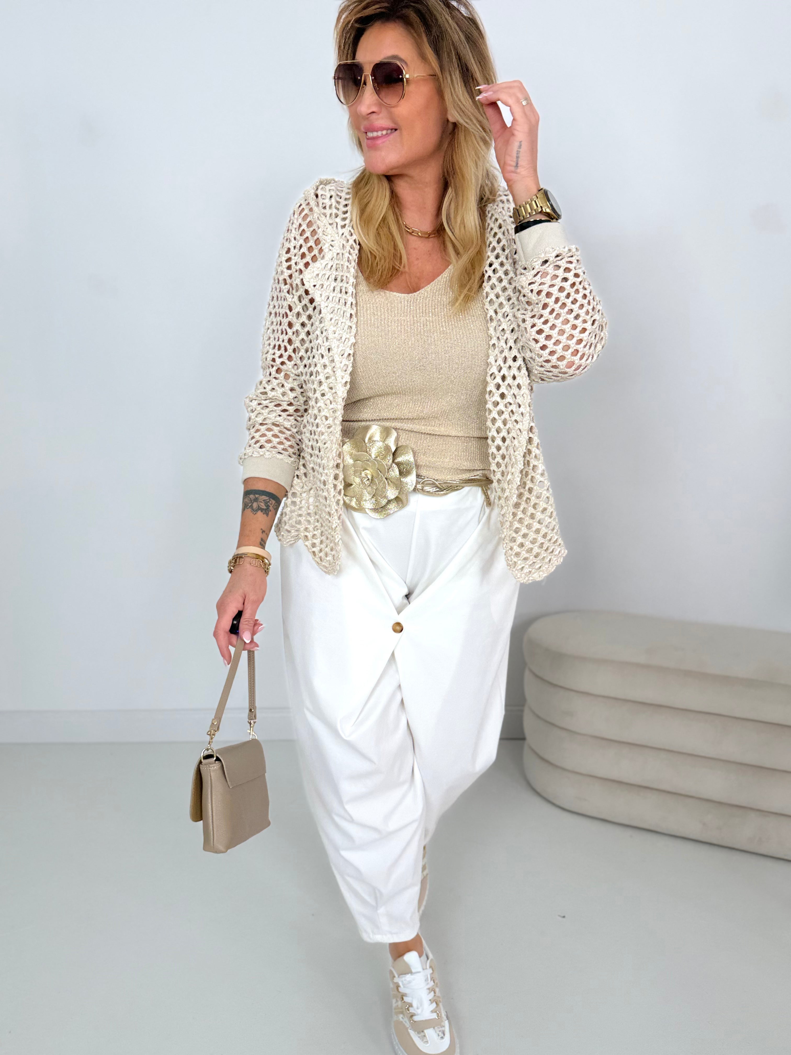 Das Model hat die Konfektionsgröße 38 (1,70m)