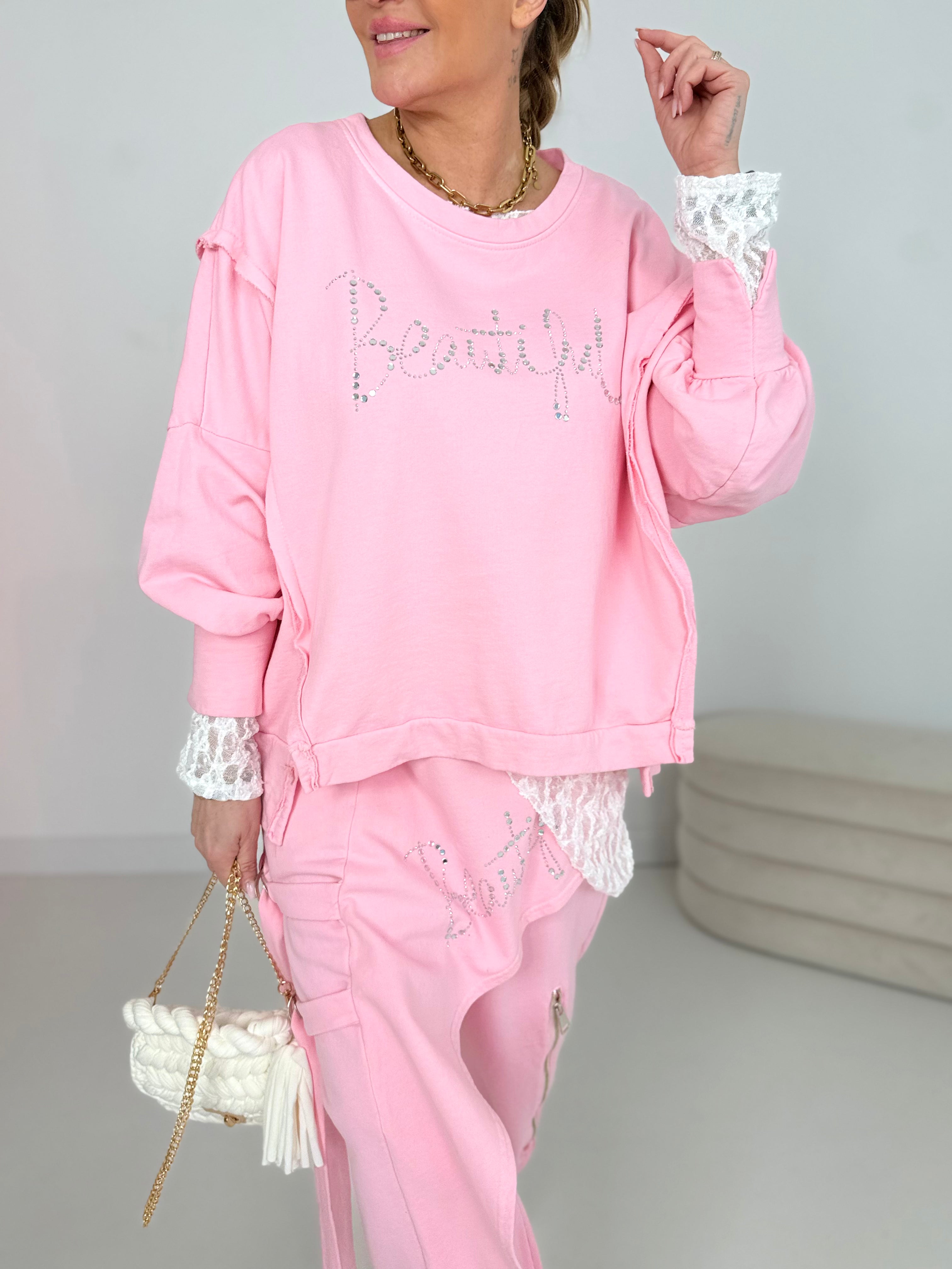 Front lettering with shiny rhinestones